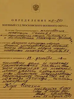 23 декабря 1998 года военный суд Московского военного округа реабилитировал майора Иоахима Куна «в связи с отсутствием преступления в его действиях».