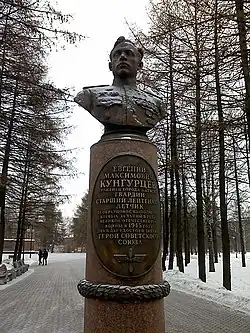 - Бронзовый бюст дважды Героя Советского Союза Кунгурцева Е. М. установлен в 1950 году на его родине — в столице Удмуртии Ижевске (скульптор И. И. Козловский, архитектор Л. М. Поляков).
