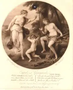 «Купидон и Ганимед» («Венера находит Купидона, играющего в кости с Ганимедом») — картина художницы Ангелики Кауфман, написанная в 1782 году для Джорджа Боулза. Литературной основой работы стал переработанный поэтом Мэтью Прайором античный миф о том, как Ганимед переиграл Купидона в кости. Согласно стихотворению залогом игры служили стрелы Купидона — атрибут его божественной силы. Купидон изображён на картине в центре, спиной к зрителю, и выглядит расстроенным и испуганным; он поднимает руки к лицу, то ли плача, то ли боясь нагоняя от матери. Рассерженная богиня любви Венера, заставшая игру, стоит от него слева с поднятой вверх левой рукой. Ганимед сидит справа; правую руку он поднял к богине в примирительном жесте, но левую отвёл за спину — в ней он держит уже выигранные им стрелы. Между Ганимедом и Купидоном валяется колчан со стелами и кубок с выпавшими из него костями. В 1784 году английский художник Томас Берк создал c картины пунктирную гравюру, которая были опубликована в Лондоне и широко растиражирована. В дальнейшем картина часто использовалась в декоративно-прикладном искусстве, особенно в росписи фарфора[1]. В коллекции Музея Форарльберга есть другая картина — «Ганимед и орёл» (1793)[2].