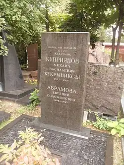 - Вторая жена — Евгения Соломоновна Абрамова (1908—1997), художник, захоронена вместе с мужем.