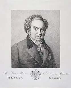 Князь Алексе́й Бори́сович Кура́кин (19 сентября 1759 — 30 декабря 1829) — российский государственный деятель, действительный тайный советник 1-го класса (1826), который занимал ряд высших постов в царствования Павла I и Александра I. Прямой предок всех последующих князей Куракиных. Сенатор (1796).[2]