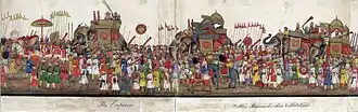 Панорама в 12 складок, показывающая мусульман, возвращающихся из их мечетей после молитв Курбана-байрама в Могольской империи