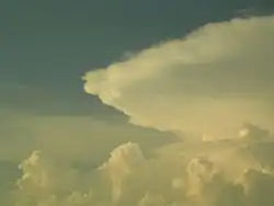 - мощные (cong., congestus) — сильно развитые по вертикали (высота по вертикали более 2 км), в виде башен, их верхние части имеют вид куполов с клубящимися очертаниями, напоминающими цветную капусту; при благоприятных условиях в процессе своего развития превращаются в кучево-дождевые (грозовые) облака.