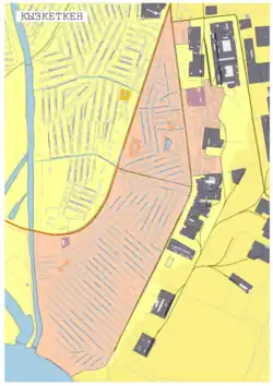 Кызкеткен состоит из 4-х махаллей: №33 Кызыл кум, №35 Наурыз, №55 Жипек жолы, №34 Жайхун.
