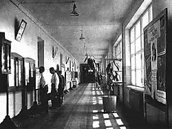 К строительству комплекса приступили в 1930 году. В процессе работы первоначальный проект видоизменили, упростив один из объёмов. К осени 1932 года Учебный корпус был готов на 98 %.