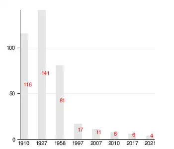 | 1910 | 1927 | 1958 | 1997 | 2007[13] | 2010[14] | 2017[1] |