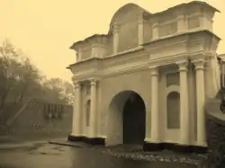| Стена Киево-Печерской Лавры и музей «Художественный арсенал» на Лаврской улице в Киеве | |