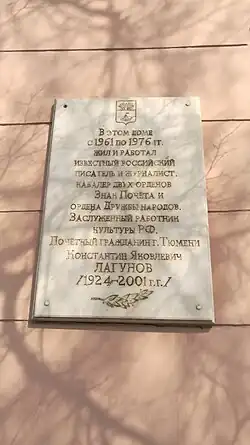 - Комаров С. А. Лагунов Константин Яковлевич // Большая Тюменская энциклопедия / Гл. ред. Г. Ф. Шафранов-Куцев. — Тюмень: НИИ региональных энциклопедий ТюмГУ; «Сократ», 2004. — Т. 2. И—П. — С. 194. — 495 с. — 10 000 экз. — ISBN 5-88664-171-8.