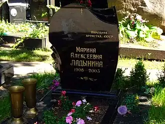 - ↑ Раззаков Ф. Ладынина Марина // Как уходили кумиры. Последние дни и часы народных любимцев. — М.: Эксмо, 2007. — 672 с. — ISBN 978-5-699-10035-4.