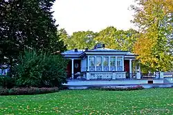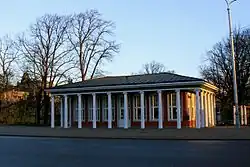 К началу 1920-х годов каноны моды изменились, и швейцарский дизайн оказался устаревшим. В 1924 году Рижская дума направила в проектировочное бюро прибалтийско-немецкого архитектора Артура Мёдлингера (ученика Константина Пекшена) заказ на строительства нового киоска на остановке трамвая на перекрёстке бульвара Бастея и улицы Бривибас. Он создаёт проект сохранившегося до наших дней Колоннадного киоска в модном неоклассическом стиле — с виду он напоминал элегантный древнегреческий храм в миниатюре. Это архитектурное решение было необходимо, чтобы добиться гармонии с располагавшимся по соседству монументальным зданием Латвийской Национальной оперы. Старую деревянную постройку в швейцарском стиле сослали на новое место, в рижский микрорайон Гризинькалнс.