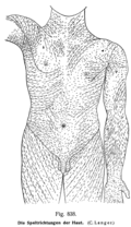 Научные работы Лангера касаются анатомии человека и позвоночных животных. Ему, в частности, принадлежит учебник по анатомии (нем. Lehrbuch der systematischen und topographischen Anatomie). К настоящему времени, однако, Лангер наиболее известен как систематизатор «линий Лангера» — линий натяжения кожи человека: этой теме была посвящена его статья 1861 года «К анатомии и физиологии кожи. О расщепляемости кожного покрова» (нем. Zur Anatomie und Physiologie der Haut. Über die Spaltbarkeit der Cutis).