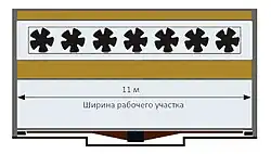 - сечение рабочего участка — прямоугольник 11×2,3 м;