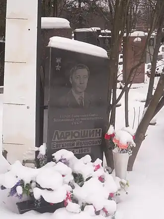 - ↑ Ларюшин Евгений Иванович. Надгробный памятник. Дата обращения: 22 августа 2012. Архивировано 7 марта 2022 года.