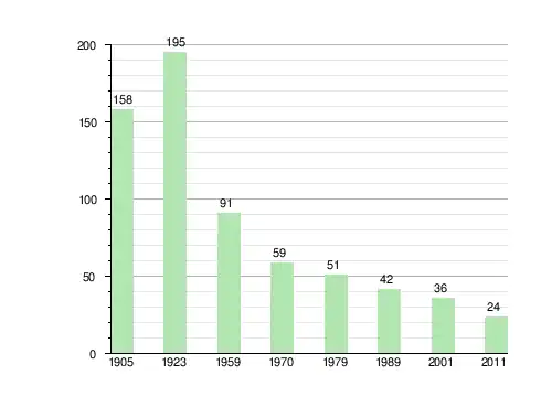 | 1905[3] | 1923[4] | 1959[5] | 1970[5] | 1979[6] | 1989[7] | 2001[8] | 2011[9] |
