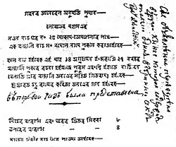 Афиша на бенгальском языке о первом спектакле Герасима Лебедева с его рукописными пометками