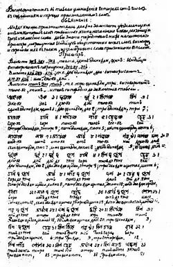 Страница рукописи «Арифметические восточных индийцев таблицы»