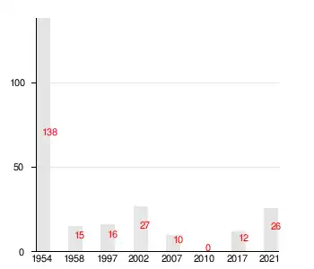 | 2007[15] | 2010[16] | 2017[17] | 2021[1] |