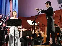 Юлия Лежнева и дирижёр Михаил Антоненко на концерте Моцарт-гала. Москва, БЗК, 30 мая 2018