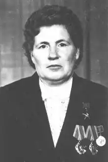 Указом Президиума Верховного Совета СССР от 6 апреля 1981 года «за выдающиеся производственные успехи в выполнении заданий десятой пятилетки и социалистических обязательств, проявленную трудовую доблесть» удостоена звания Героя Социалистического Труда с вручением ордена Ленина и золотой медали «Серп и Молот»[1].