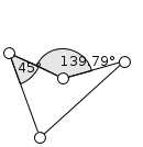 Пусть и — два четырёхугольника в с равными соответствующими сторонами. Предположим, точки и лежат по разные стороны от прямой , точка лежит на кратчайшей . Тогда следующие выражения имеют один и тот же знак: