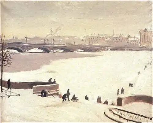 Художники предпочитали панорамные виды Ленинграда, с деловитыми буксирами и тяжелыми баржами на Неве, чаще всего с пустынным набережным и проспектам, как бы оставляя зрителя наедине с городом. По мнению А. Струковой, в 1930-е годы ленинградские «маркисты» составляли особый круг, «где «верность» французской живописи культивировалась и сознательно или подсознательно противопоставлялась диктату социалистического реализма.»[17]