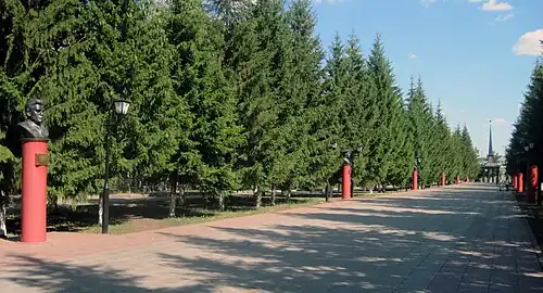 - ↑ В Республике Татарстан к 65 -летию Великой Победы установлены новые объекты, связанные с увековечением событий ВОВ, Героев Советского Союза и полных кавалеров Ордена Славы. Общественная организация ветеранов (инвалидов) войны и военной службы РТ. Дата обращения: 8 ноября 2011. Архивировано 8 ноября 2011 года.