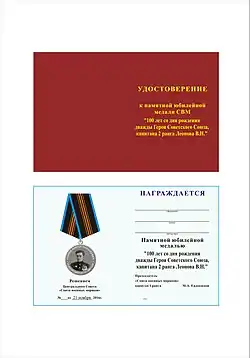 • В 2016 году к 100-летию со дня рождения «Союзом Военных Моряков» была учреждена и выпущена памятная юбилейная медаль «100 лет со дня рождения дважды Героя Советского союза капитана 2 ранга Леонова В. Н.».