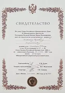 - ↑ Заседание Российского дворянского собрания 11.12.2021. Дата обращения: 12 декабря 2021. Архивировано 12 декабря 2021 года.