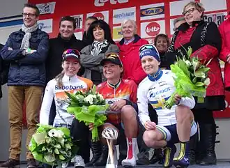 Подиум 2015 года: Анна ван дер Брегген (2), Хантал Блак (1) и Эмма Юханссон (3).