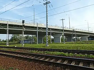 ![]() Вид на Лиговский путепровод от станции Лигово, 2017 год | |