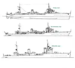 | Антонио да Ноли (итал. Antonio da Noli) | DN | CdT RT | 21.5.1929 | 29.12.1929 | подорвался на мине и затонул 9.9.43 в проливе Бонифачо |