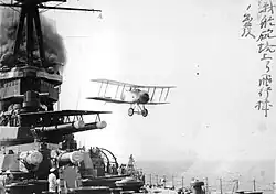 Линкоры типа «Фусо» были оснащены площадкой для взлета самолётов, смонтированной на башне № 2 в 1924 году. В ходе первого этапа модернизации линкоров площадка была установлена на крыше башни № 3. Предполагалось базирование на нём 3 самолётов, хотя корабли не были оснащены самолётным ангаром.