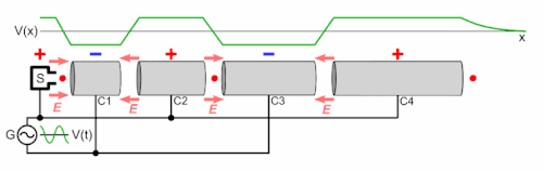 Анимированная диаграмма, показывающая, как работает линейный ускоритель