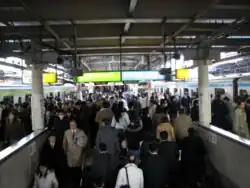 | Иокогама | 横浜 | 1.8 | 59.1 | 28.8 | ● | JR East: Линия Нэгиси (сквозное сообщение), Линия Иокогама, Линия Йокосука, Линия Токайдо Токю: Линия Тоёко Кэйкю: Линия Кэйкю Sagami Railway (Сотэцу): Линия Сотэцу Yokohama Municipal Subway: Синяя Линия (B20) Yokohama Minatomirai Railway: Линия Минатомирай |