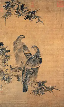 Работая в жанре «цветы-птицы», художник изображал самых разных пернатых, но особенно прославился изображением орлов и соколов. Его излюбленных, исполненных силы персонажей можно встретить на многих свитках, таких, например, как «Орёл и дикий гусь» (Гугун, Пекин), «Осенний орёл» (Гугун, Тайбэй), «Два орла» (Гугун, Тайбэй) и других.