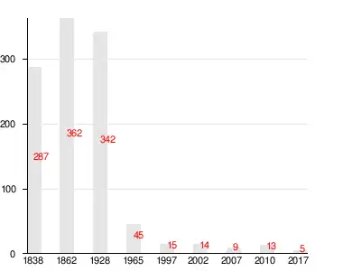 | 1838 | 1862 | 1928 | 1965 | 1997 | 2007[18] | 2010[19] |