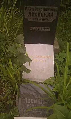 - Брат — Рувим Маркович Лисицкий (1895—1980)[42][43], майор медицинской службы, участник Великой Отечественной войны, автор научных трудов по фармацевтике, многократно переиздававшегося и переведённого на иностранные языки учебника для фармацевтических школ и училищ «Медицинское товароведение: Инструменты, аппаратура, предметы ухода за больным, перевязочные материалы, очковая оптика, натуральные минеральные воды» (1939—1956), «Справочника по готовым лекарственным формам» (с соавторами, 1962), монографии «Хранение медикаментов» (с И. И. Левинштейном, 1940, 1954).
