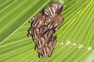 - ↑ Baker R. J., Clark C. L. Uroderma bilobatum (англ.) // Mammalian Species. — 1987. — No. 279. — P. 1–4. — doi:10.2307/3503922.
