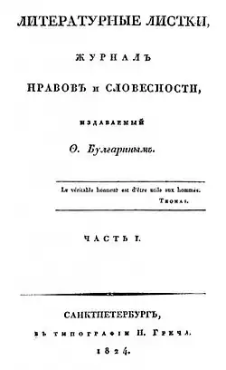 Полное название — «Литературные листки, журнал нравов и словесности, издаваемый Ф. В. Булгариным» с эпиграфом из А. Тома «Le véritable honneur est d'être utile aux hommes» («Настоящая честь — быть полезным людям»). Основан в 1824 году в Санкт-Петербурге.