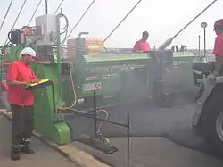 - Добавки, вводимые в литую асфальтобетонную смесь, могут применяться для придания окраски (красящие пигменты), улучшению свойств вяжущего, снижения вязкости смеси и её температуры при укладке (дефлегматоры[15]).