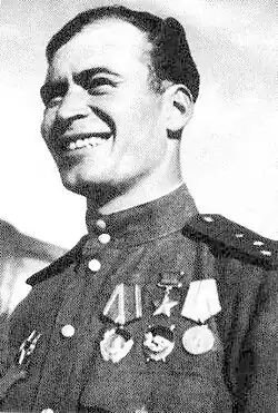 - ↑ Указ Президиума Верховного Совета СССР «О присвоении звания Героя Советского Союза офицерскому составу военно-воздушных сил Красной Армии» от 4 февраля 1944 года // Ведомости Верховного Совета Союза Советских Социалистических Республик : газета. — 1944. — 17 февраля (№ 10 (270)). — С. 1. Архивировано 8 марта 2022 года.