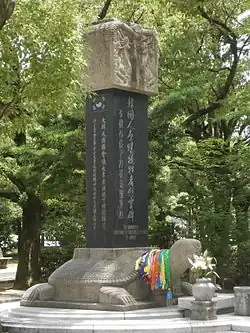 - ↑ Monument in Memory of the Korean Victims of the A-bomb. www.pcf.city.hiroshima.jp. Дата обращения: 22 апреля 2018. Архивировано 5 января 2013 года.