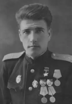 - ↑ Указ Президиума Верховного Совета СССР «О присвоении звания Героя Советского Союза офицерскому составу Военно-Морского флота» от 22 января 1944 года // Ведомости Верховного Совета Союза Советских Социалистических Республик : газета. — 1944. — 3 февраля (№ 6 (266)). — С. 1. Архивировано 13 января 2022 года.
