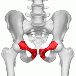 - тела (лат. corpus ossis pubis): участвует в образовании вертлужной впадины, верхней части запирательного отверстия (лат. foramen obturatum), соединяется с телом подвздошной кости, образуя на передневерхней поверхности подвздошно-лобковое возвышение (лат. eminentia iliopubica) и с телом седалищной кости;