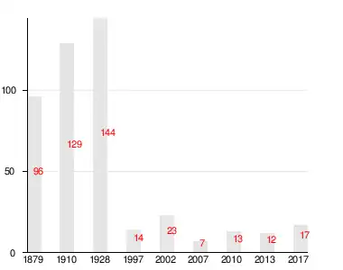 | 1997[16] | 2002[17] | 2007[18] | 2010[19] | 2017[1] |