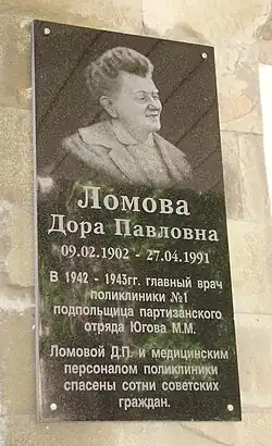 - ↑ В Ростове установлена мемориальная доска врачу Доре Ломовой. Дата обращения: 2 декабря 2017. Архивировано 3 декабря 2017 года.