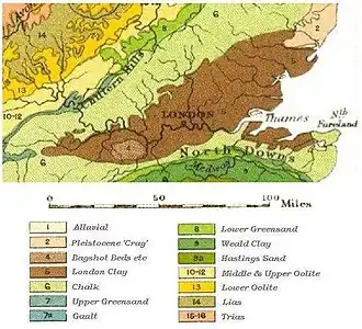 - ↑ Под термином Лондонский бассейн часто понимают куэстовую равнину между равниной Мидленд на севере и холмами Норт-Даунс на юге.