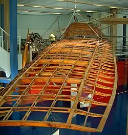 Лонжеронное крыло включает один или несколько продольных силовых элементов — лонжеронов, которые воспринимают изгибающий момент.[5] Помимо лонжеронов, в таком крыле могут присутствовать продольные стенки. Они отличаются от лонжеронов тем, что панели обшивки с стрингерным набором крепятся к лонжеронам. Лонжероны передают нагрузку на шпангоуты фюзеляжа самолёта с помощью моментных узлов.