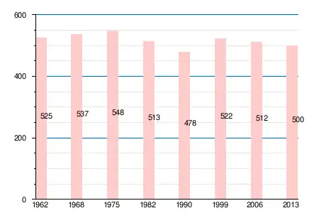 | 1962 | 1968 | 1975 | 1982 | 1990 | 1999 | 2006 | 2008 | 2011 | 2012 | 2013 |