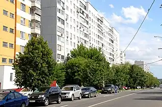- Дом 5 — Торгово-офисный центр, отделение Сбербанка, супермаркет «Перекрёсток», радиорынок «Спарк», аптеки.